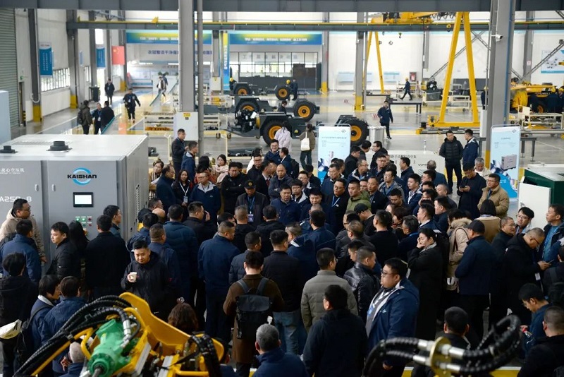 會議還安排與會者前往開山重工宜昌工廠實地考察,在嶄新的廠房內,一臺安靜運行著的250kW、8bar排氣壓力的磁懸浮四級壓縮離心空氣壓縮機成為明星產品,出色的表現得到了參觀者極高的評價。開山還展示了鋰電池新能源移動空氣壓縮機、應用于海外高端工程市場的全新設計柴油引擎螺桿空氣壓縮機、變節距干式真空泵以及智能鑿巖機器人等產品。大家對開山的創新能力和領先的高新技術產品贊不絕口。