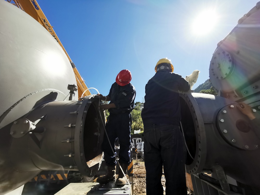 還有這樣一群開山人(鄭源、許柯柯、陳斌、洪劍、朱鑫、方文軍、許靈建、徐雄巍、余志金、徐寧、王彪、張建新、李鋼、鄭建金、鄭志明、陳蛟、黃文武、洪俊、王建剛、范鵬、陳正鋒),他們于2020年2月,在疫情蔓延的關(guān)鍵時(shí)刻,勇于擔(dān)當(dāng),逆行而上。按照政府相關(guān)規(guī)定,經(jīng)國內(nèi)醫(yī)院健康檢查合格后,緊急趕赴印尼和美國,又按照當(dāng)?shù)匾?guī)定,進(jìn)行健康檢查和集中隔離,隔離期滿后第一時(shí)間前往工程項(xiàng)目建設(shè)施工現(xiàn)場進(jìn)行安裝工作。
