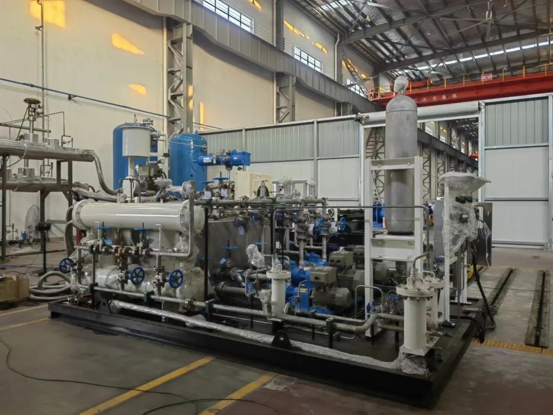 為西北客戶定制的這套低溫空分液體膨脹發(fā)電裝置,以低溫液化空氣為介質(zhì),機(jī)組由上海開(kāi)山能源裝備有限公司承制,在衢州開(kāi)山離心機(jī)械有限公司低溫液氮測(cè)試臺(tái)完成各項(xiàng)測(cè)試。設(shè)備投入商業(yè)運(yùn)行后,可為客戶帶來(lái)顯著的綜合效益,除了發(fā)電效益以外,將同時(shí)產(chǎn)生更顯著的低溫制冷效益,進(jìn)而提升空分產(chǎn)品氣體的產(chǎn)量和質(zhì)量。