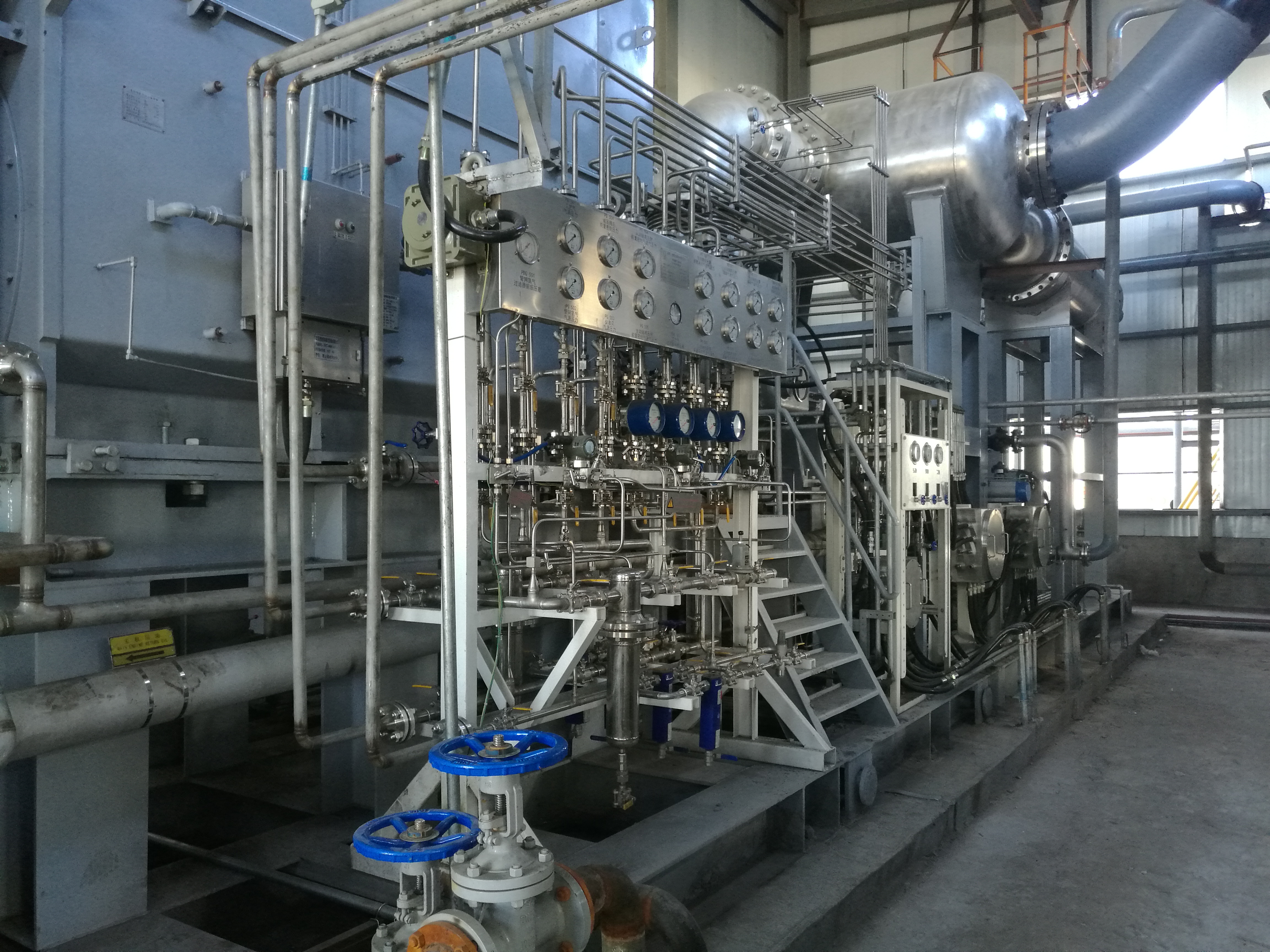 以最典型的煤化工和鋼鐵尾氣初級焦?fàn)t煤氣增壓為例,噴水螺桿壓縮機(jī)耐焦油、萘等特點(diǎn),成為該工藝段首選設(shè)備,由于國內(nèi)工藝螺桿壓縮機(jī)制造商受型線技術(shù)及設(shè)計(jì)能力限制,單級排氣壓力只能達(dá)到0.7MPaG,雙級達(dá)到1.0MPaG。開山利用自身型線技術(shù)及設(shè)計(jì)制造優(yōu)勢,將單級壓縮排氣壓力提升至1.0MPaG(壓比>11,容積流量280m3/min),雙級壓縮排氣壓力提升至1.65MPaG,(壓比>17.5,容積流量766m3/min),已在多個(gè)項(xiàng)目成功應(yīng)用,連續(xù)穩(wěn)定運(yùn)行時(shí)間超過4年。根據(jù)目前開山的技術(shù)儲(chǔ)備,且經(jīng)過廠內(nèi)反復(fù)試驗(yàn)驗(yàn)證,該類壓縮機(jī)全譜系單級壓縮排氣壓力可至1.6MPaG,雙級壓縮排氣壓力至2.5MPaG。排氣壓力的提升可以提高后段提純工藝的操作壓力,大大縮小提純設(shè)備的體積,對于降低全流程設(shè)備投資,提高氣體處理純度有著顯著的效果。